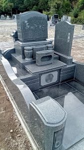 建込工事 2021年09月08日 こんにちは。 西の杜新里聖地霊苑協力石材店のE&Sの安藤です。 一日中雨が降ったりやんだり肌寒い日となりました。 本日は、朝一番にお墓の引き渡しがございました。 秋海石という石を使用しています。 きれいな立派なお墓が出来て良かったですね。 また、雨の中バスでお越しいただいたお客様ありがとうございました。 あすは、芝墓地での建込工事。 今のところ雨の予報です、無事安全に済みますように。。。 では~