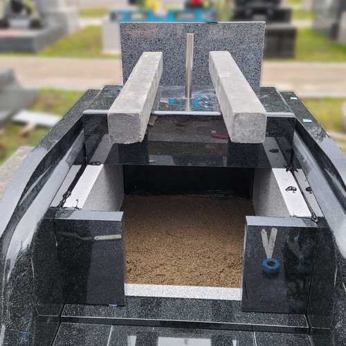 カロートは二重構造になっており、さらに石塔には芯材を通すことで