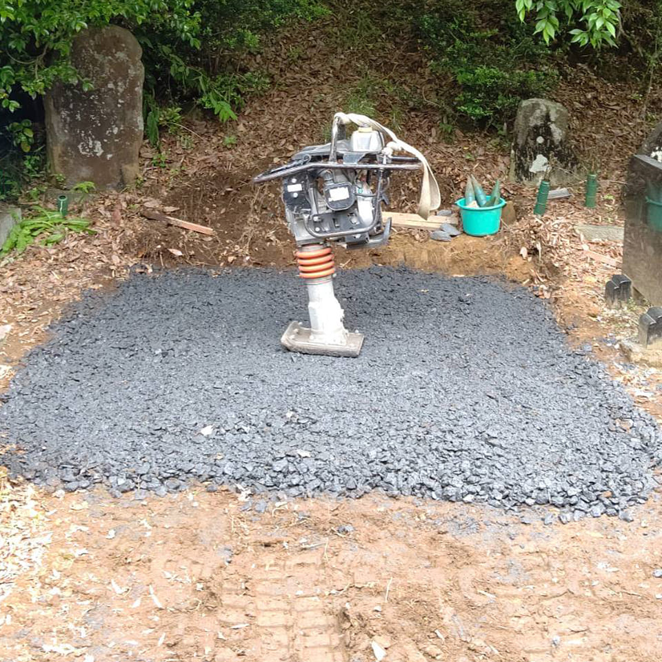 お墓後ろの斜面の土が流れてきても大丈夫なように